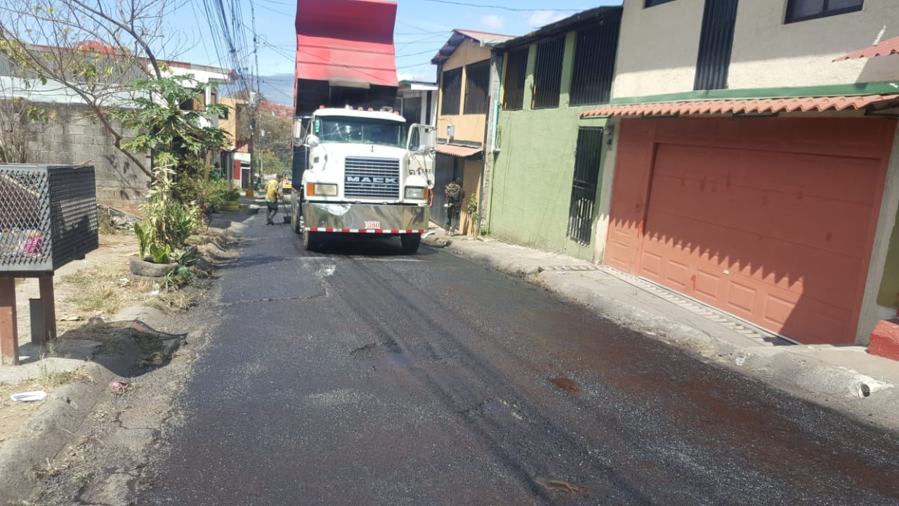 Proyecto mejoramiento de la red vial cantonal para una intervención de 2580 toneladas de asfalto en recarpeteo, 369 toneladas en bacheo y 7035 m2 de perfilado en varios distritos del cantón de Alajuelita.